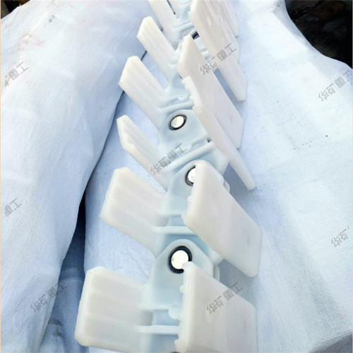 采煤機用電纜夾板重量輕、體積小、結(jié)構(gòu)緊湊,安裝方便快捷,維護維修簡單,且使用壽命長,抗拉強度、抗沖擊力大等。其優(yōu)點是內(nèi)襯鋼骨架承載拖曳力,保護電纜或水管不受外力作用,尼龍66中添加阻燃、抗靜電等助劑,具有阻燃、抗靜電作用。相鄰電纜夾易于連接,根據(jù)采煤機工作面需要可以任意延長,在拖曳過程中保護電纜或水管工作,不被折斷或破損,提高生產(chǎn)效率,降低維護維修成本。
