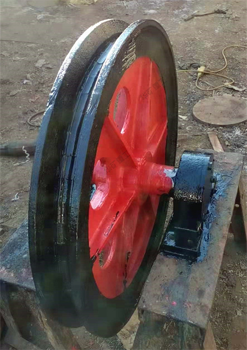 天輪安裝在井架上,作支撐,供礦井提升時支拖提升機卷筒到提升容器之間,引導鋼絲繩轉向之用。繩槽帶塑襯或膠塊,增加鋼絲繩的使用壽命。礦用天輪對固定軸、游動軸及鋼繩完全無磨損、耐高壓、自潤滑、特別耐磨,使用壽命2年以上,其固定或游動軸基本可使用不換。