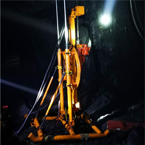 導(dǎo)軌式回轉(zhuǎn)鑿巖機的轉(zhuǎn)釬扭矩較大,故在鉆鑿具有列隙、溶洞的礦巖時不易卡釬,即使有時發(fā)生卡釬故障亦可采用弱沖擊回轉(zhuǎn)辦法消除故障。鑿巖機所適應(yīng)的軸推力范圍大,故便于操作。