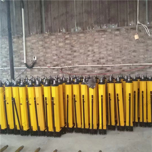 YT4-6A、YT4-8A型液壓推溜器,是為滿足煤礦炮采、普采工作面的需要而設(shè)計的手動移溜器具。與其它移溜器械相比,具有適應(yīng)性強、機動性好、操作省力、工效高、易維修、安全可靠,比集中供油的液壓千斤頂移溜可大量節(jié)省投資,經(jīng)濟上合算。 YT4-6A、YT4-8A液壓移溜器結(jié)構(gòu)為缸體外壁的前部和后部同向分別固定裝有前液壓閥和后液壓閥,在兩閥之間的缸體外壁相對的兩側(cè)固定裝有定位軸;缸體通過定位軸座落在固定座上的縱向長孔內(nèi);固定座的底部固定裝有底板,底板靠近活塞桿一端向上翹起;固定座的頂部固定裝有嗆頂座,嗆頂座上部的槽形結(jié)構(gòu)向后傾斜,并與水平面成20°-24°夾角。本實用新型設(shè)計合理,液壓注液槍注液與缸體分離,推溜器移動方便,缸體兩端可調(diào);活塞桿可與擋煤板連接時正常接觸,延長設(shè)備使用壽命。